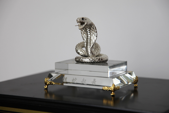 上海辛克試驗機有限公司送來的慶典禮品是純銀打制品的“靈蛇納福”